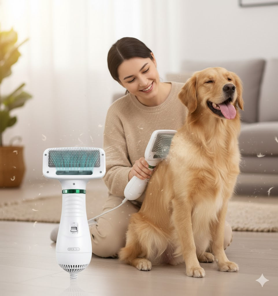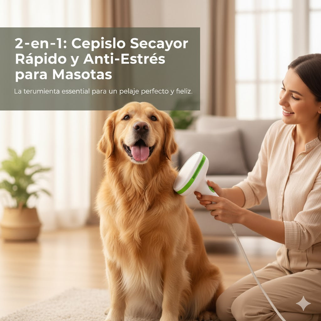 "2-en-1: Cepillo Secador Rápido y Anti-Estrés para Mascotas"