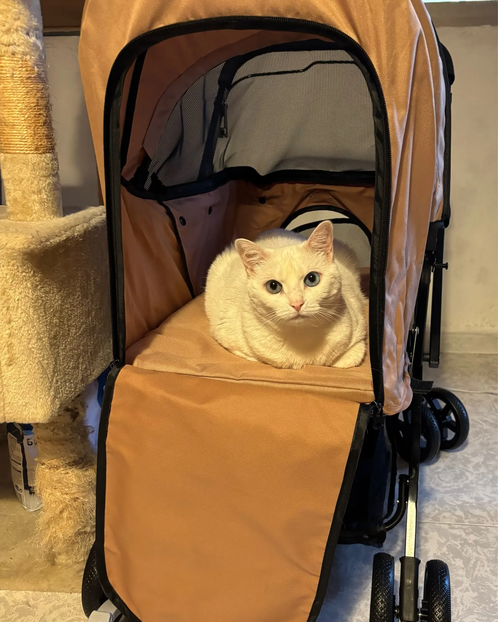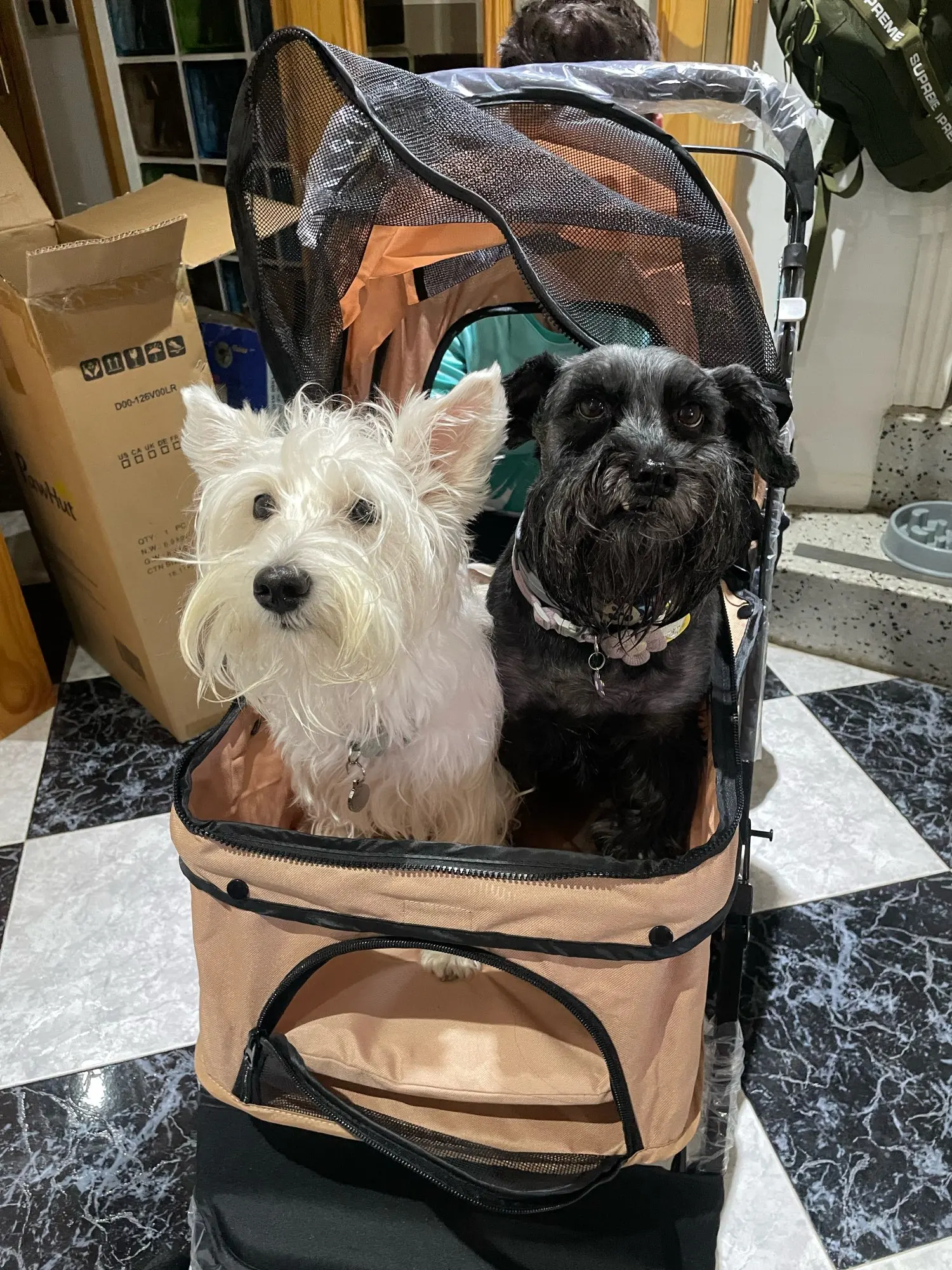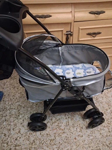 After spending a long time not knowing which one to choose and doubting, the truth is that it's perfect. This color has a larger inner carrier than the others. My dog weighs 9kg and this one can hold up to 15kg because I wanted to be able to put another 6kg dog in it on occasions. Super easy and quick to set up. You can position the stroller so that the animal looks at you or looks out. If you have doubts about which one to buy, you won't regret it.